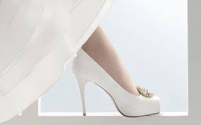 Sapatos de noiva podem ser feitos de diversos materiais como a seda, veludo, cetim, brocado, e ter detalhes incorporados como contas, fitas, contas, cristais, ou flores brancas.